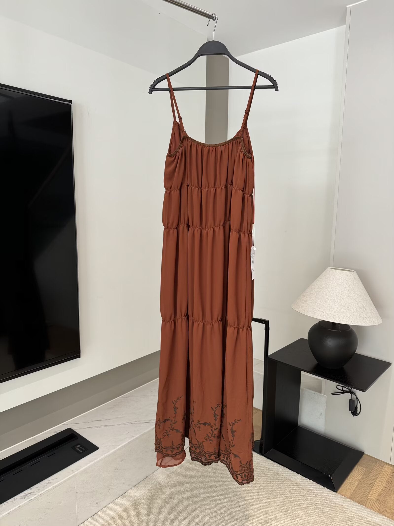 שמלת MIDI עם קפלים רקומים וגזרות אופנתיות לנשים לשנת 2025