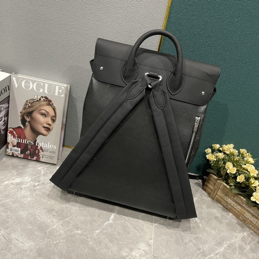 Men's new Joker casual natural cowhide silver-plated metal ornaments travel business commuter bag backpack.