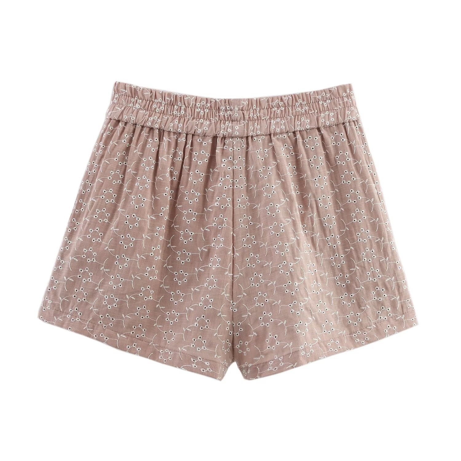 Summer women's new hollow embroidery layered decorative top+Shorts suit