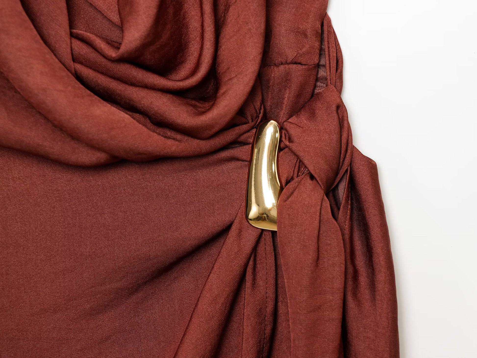 Women's 2025 fashion sexy backless pleated hanging neck mini dress