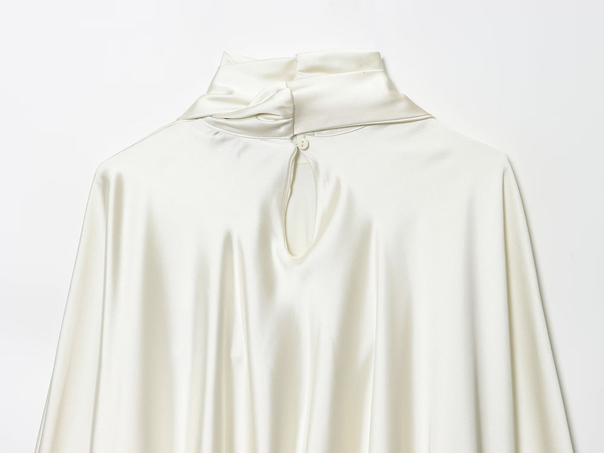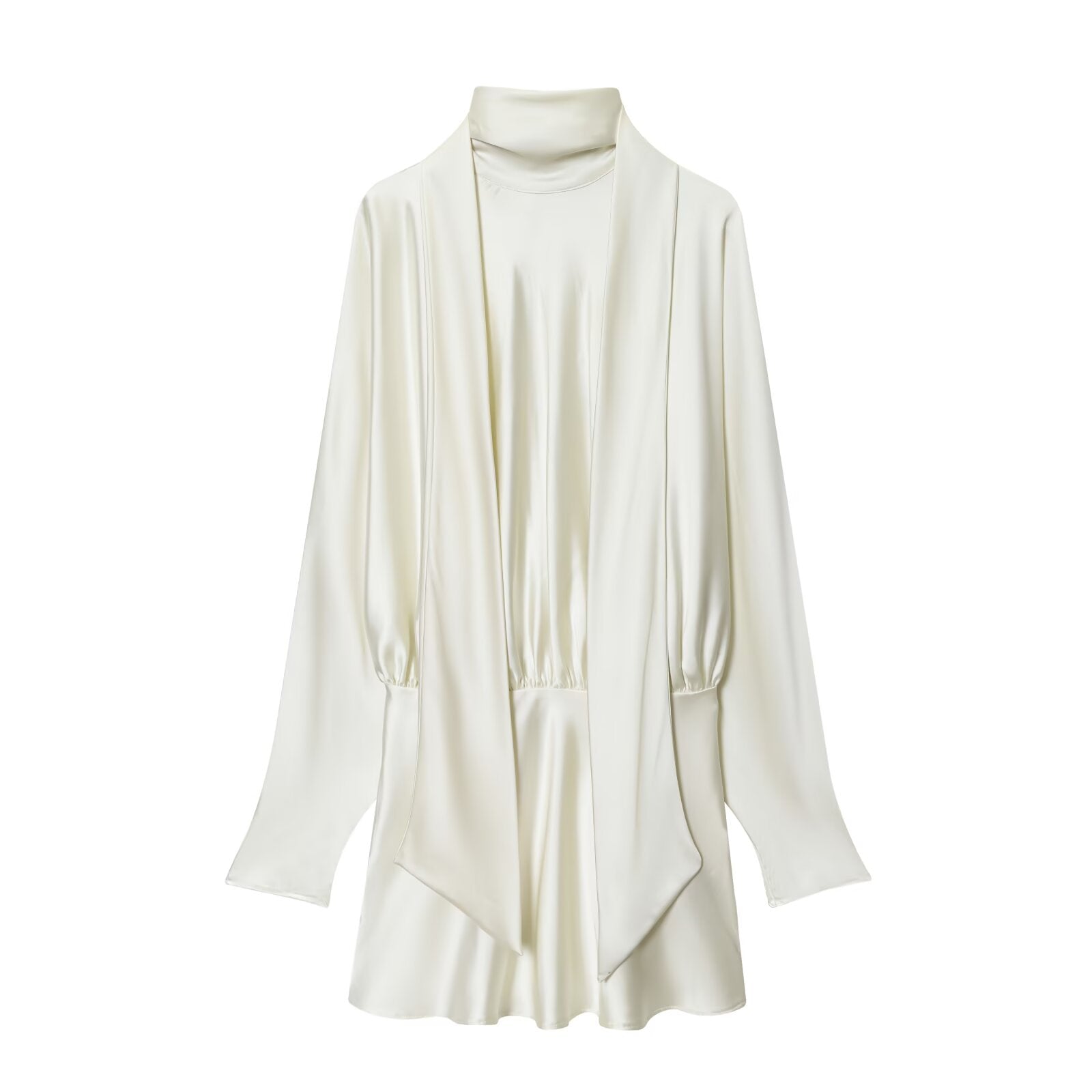 Women's 2025 new fashion scarf decoration satin texture mini dress