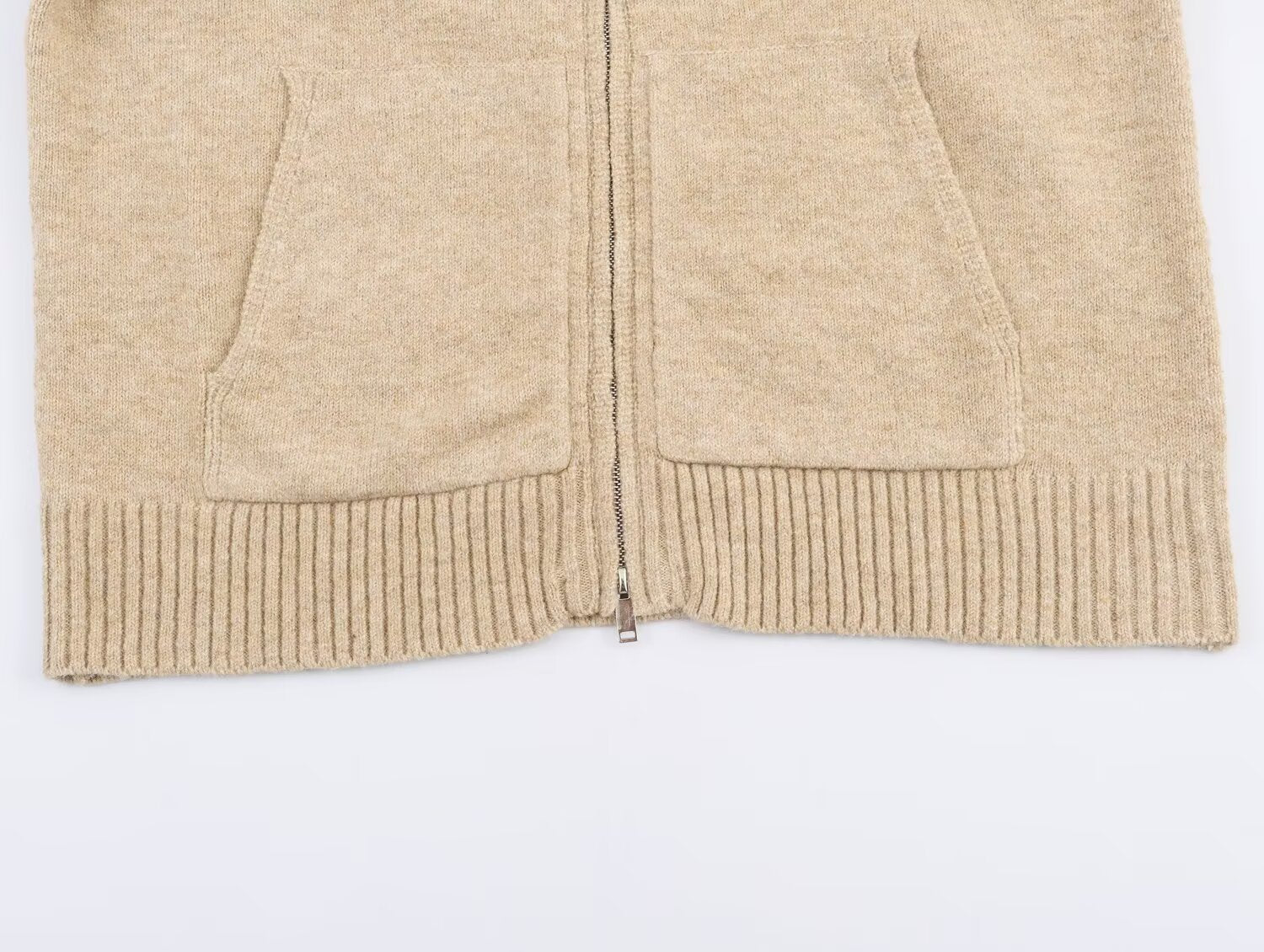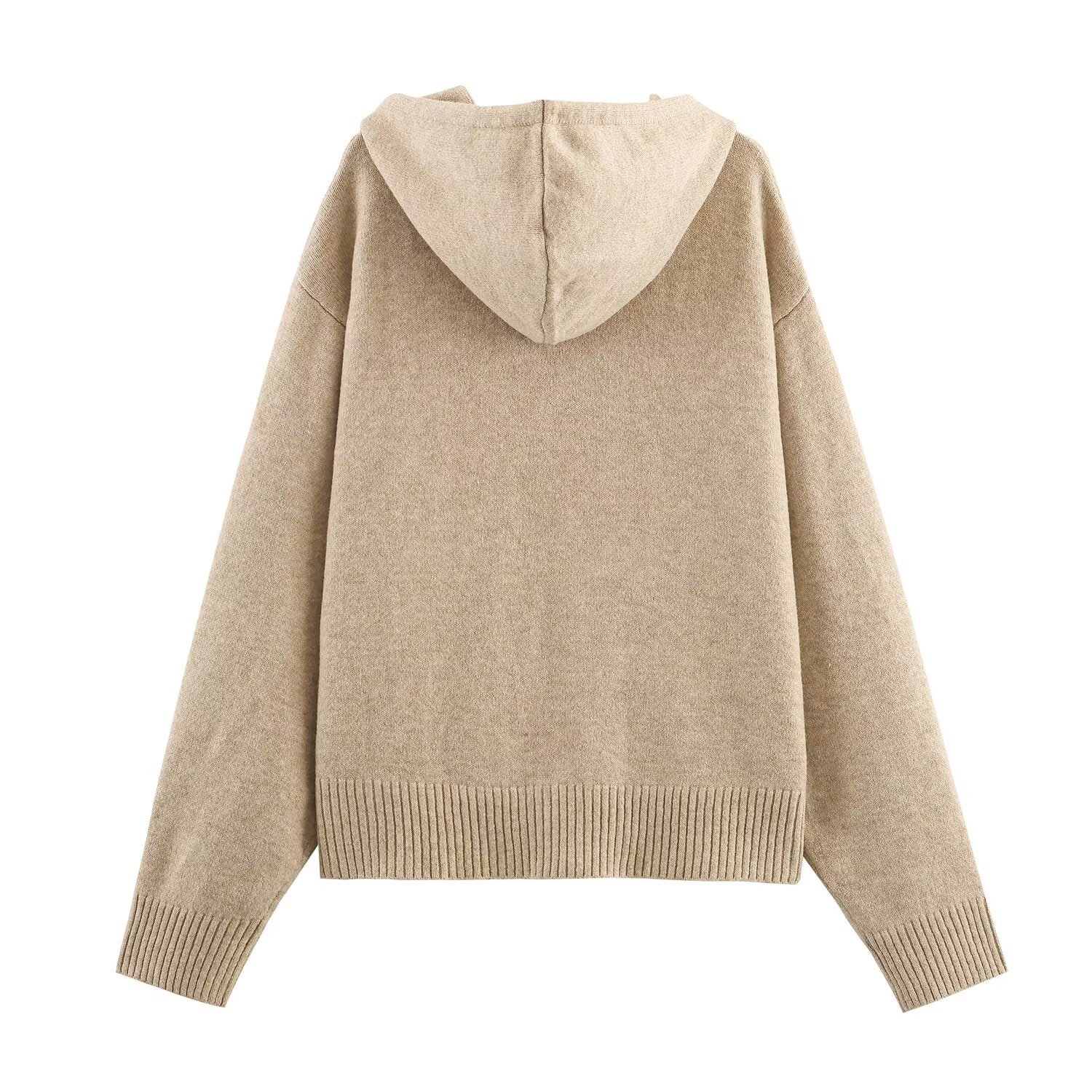 Women's 2025 New Loose Zipper Knitted hooded sweatshirt