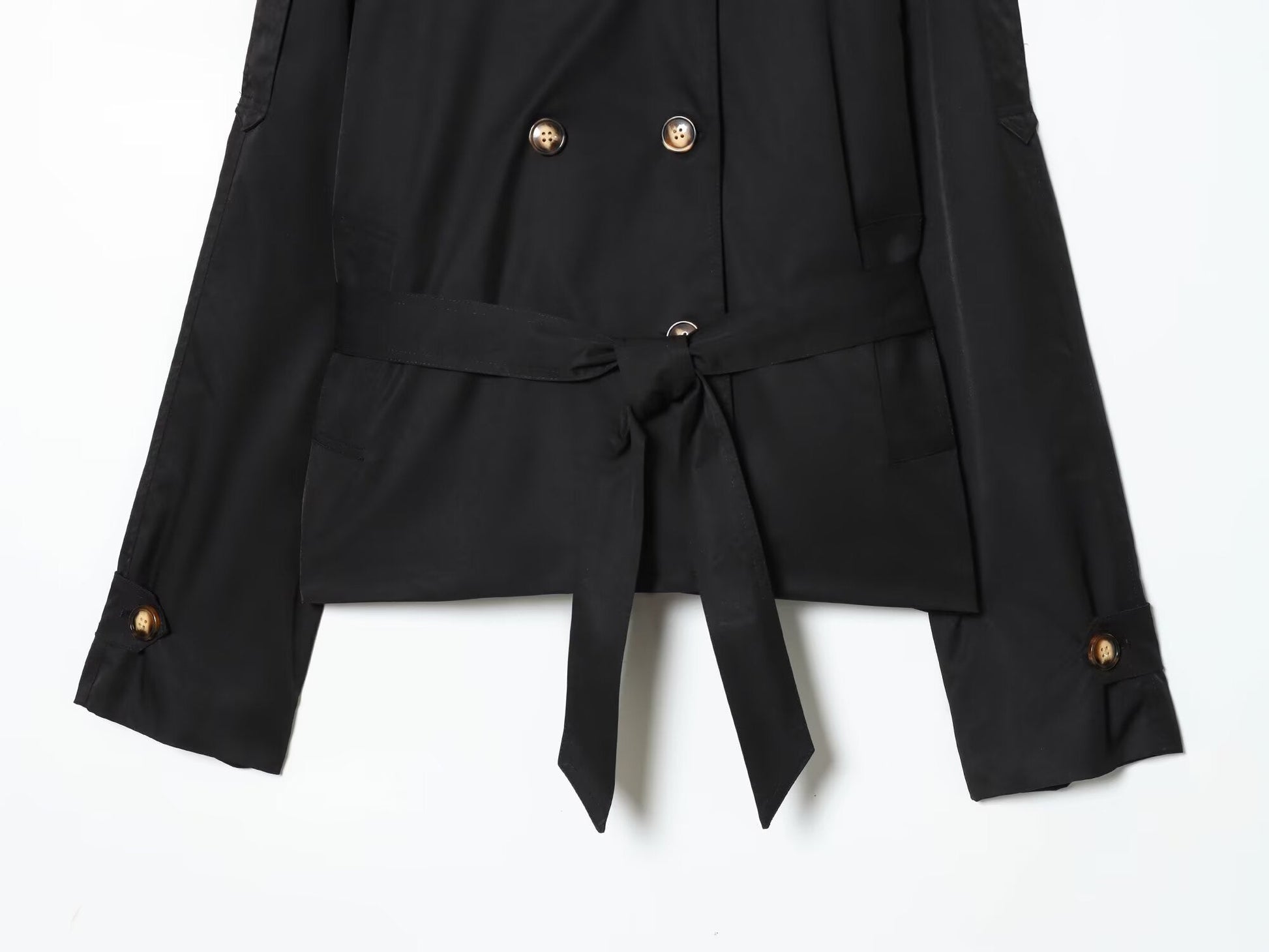 Women's 2025 New With Belt Short Double breasted Windbreaker Coat