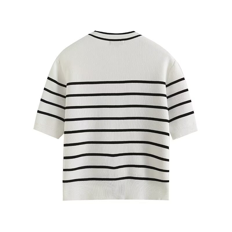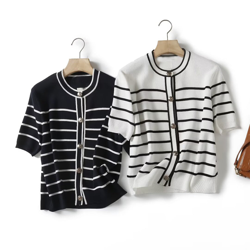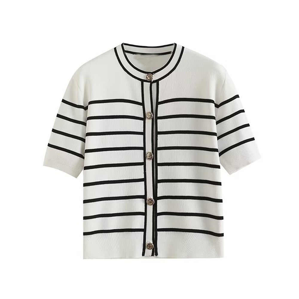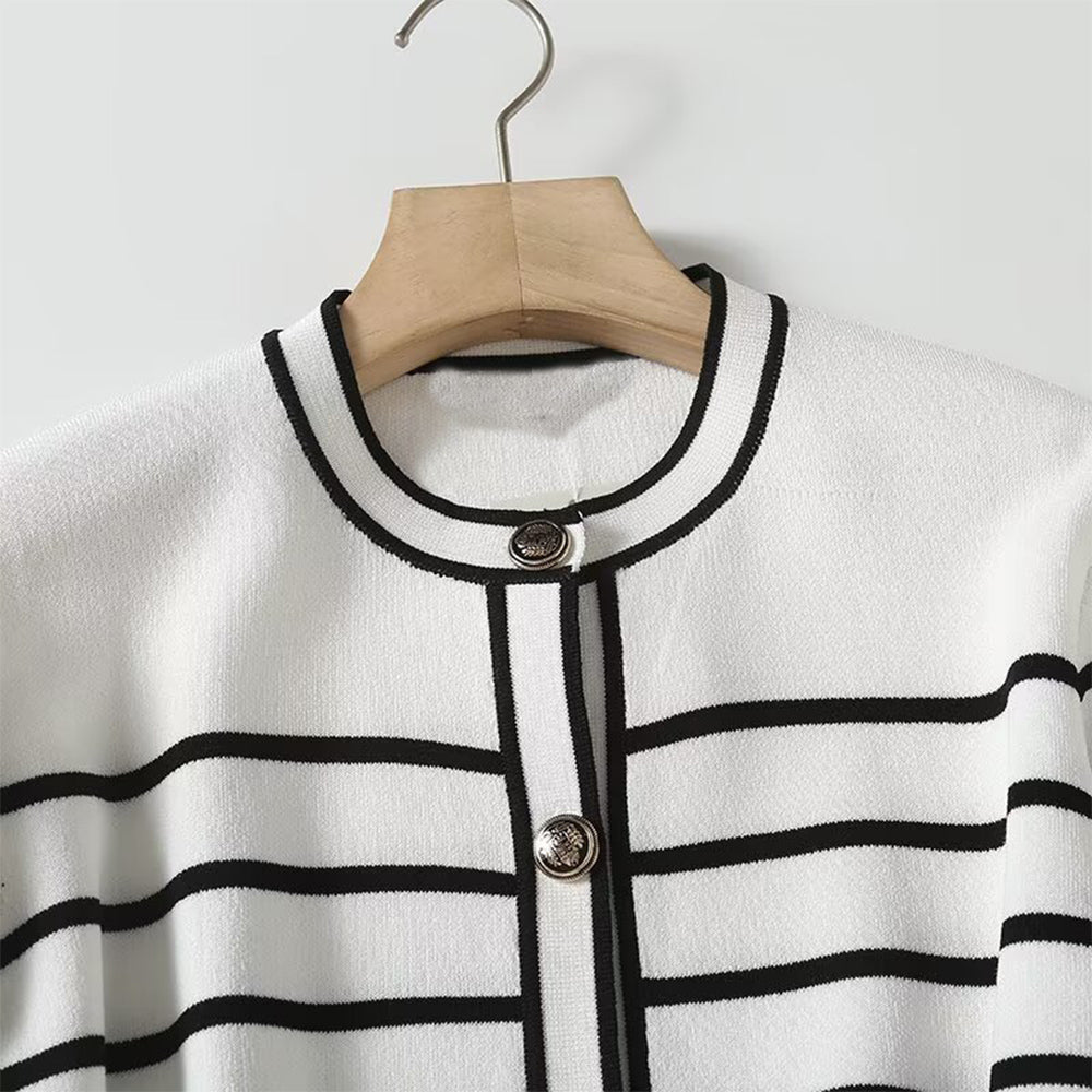 קרדיגן פסים קצר בעיצוב כפתורים לנשים בסגנון סתיו