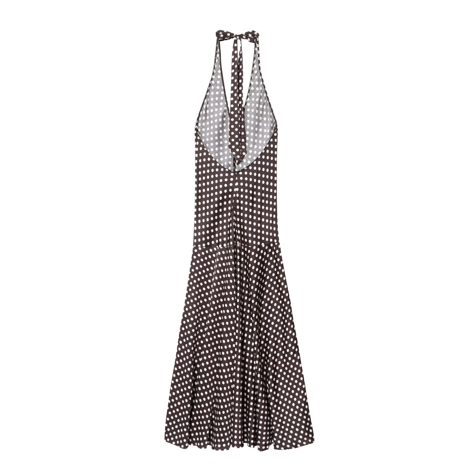 women's chic Fashion sexy wave point hanging neck MIDI dress