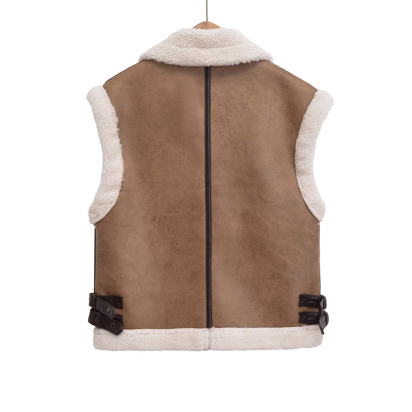 Women's loose Fur Faux Leather vest Coat