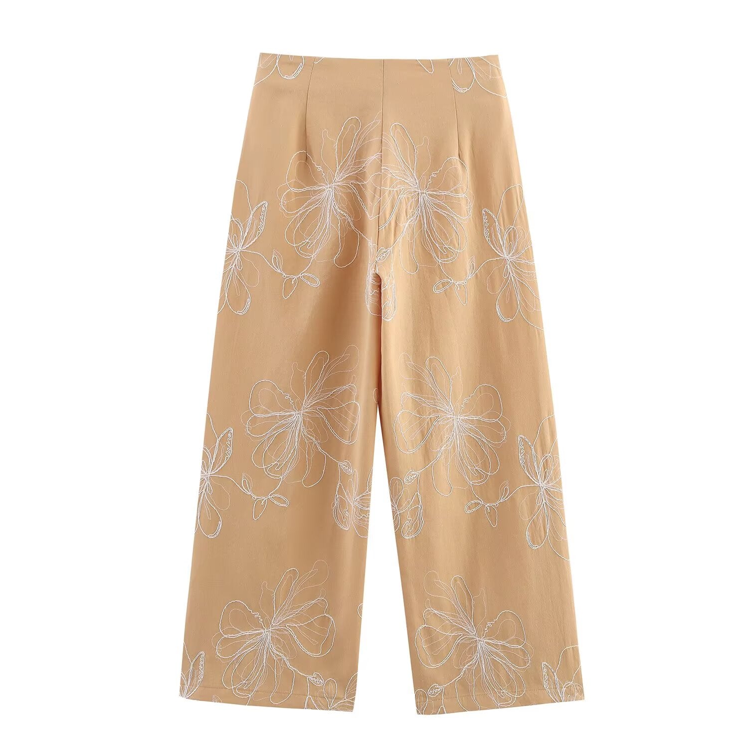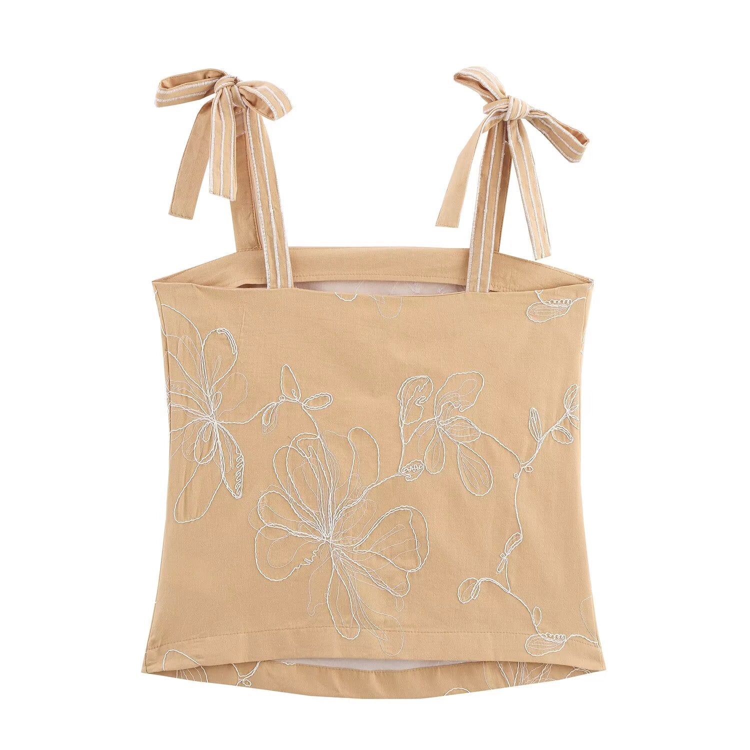 Women's new fashion floral embroidery bow suspender top+Pants suit
