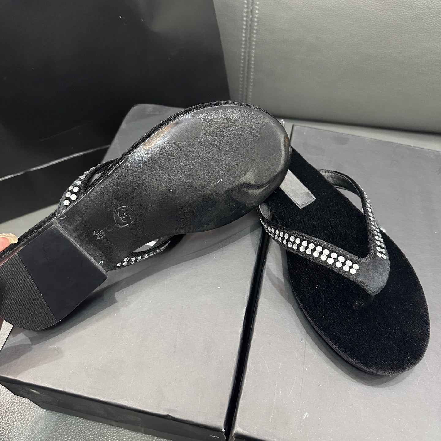 Women's New Fashion Joker Rhinestone Decorative Thin Bottom Toe Slippers Have A Shoe Box.