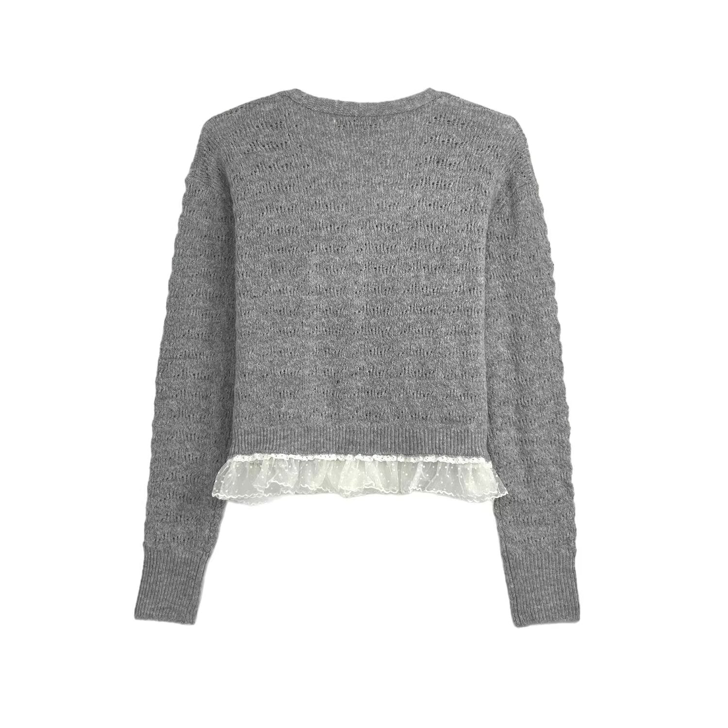 קרדיגן סרוג עם צווארון V וטלאים בסגנון תחרה אופנתי חדש לנשים