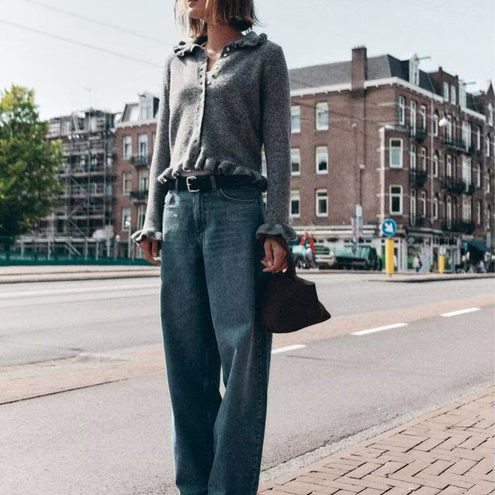 קרדיגן סרוג עם דש ארוכות שרוולים ושכבות אופנתי חדש לנשים