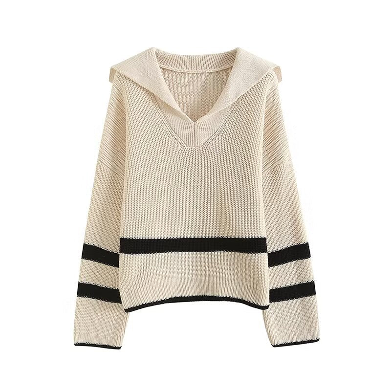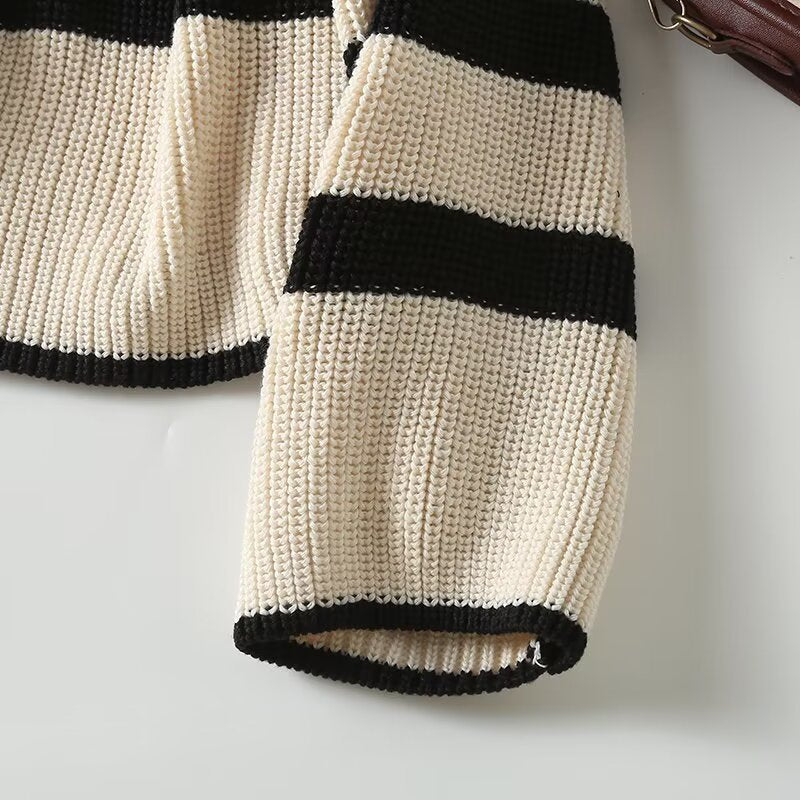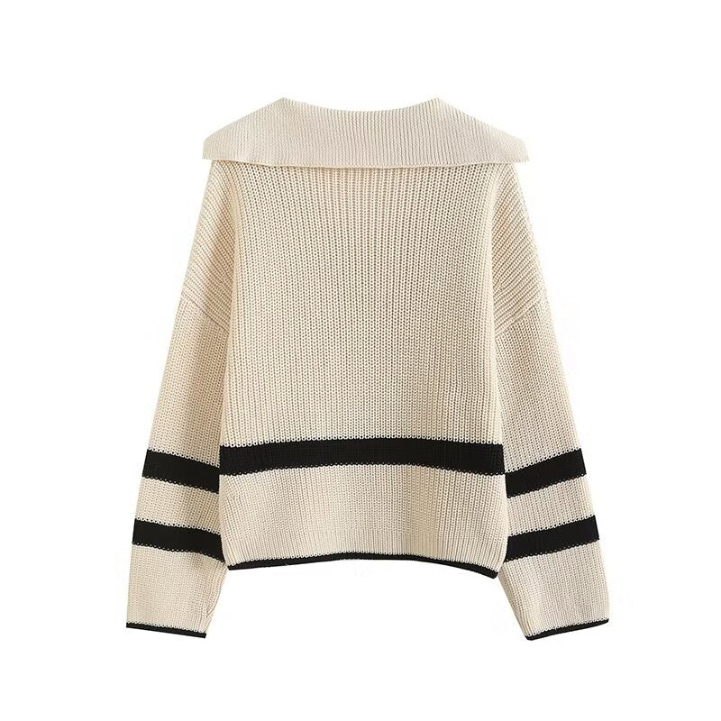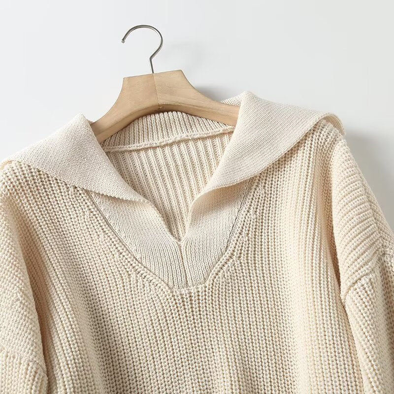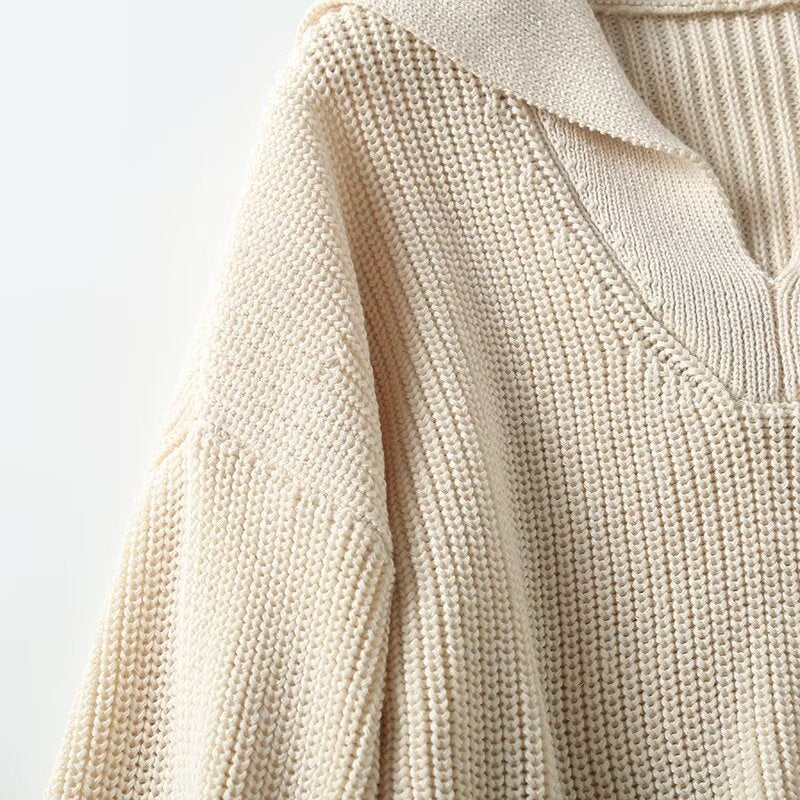 סוודר סרוג עם צווארון פולו רופף חדש לנשים