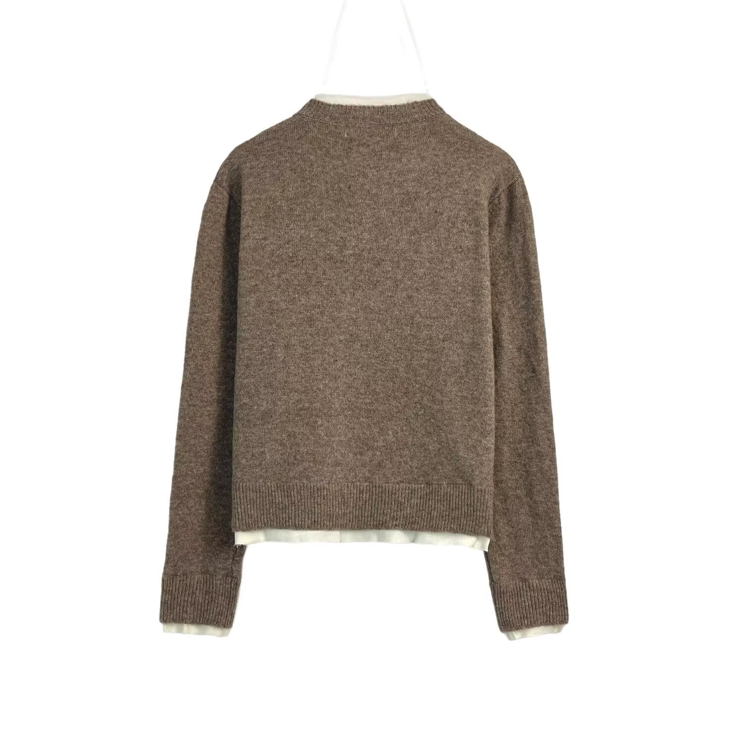 קרדיגן סרוג עם צווארון O ושרוולים ארוכים וניגודיות לנשים