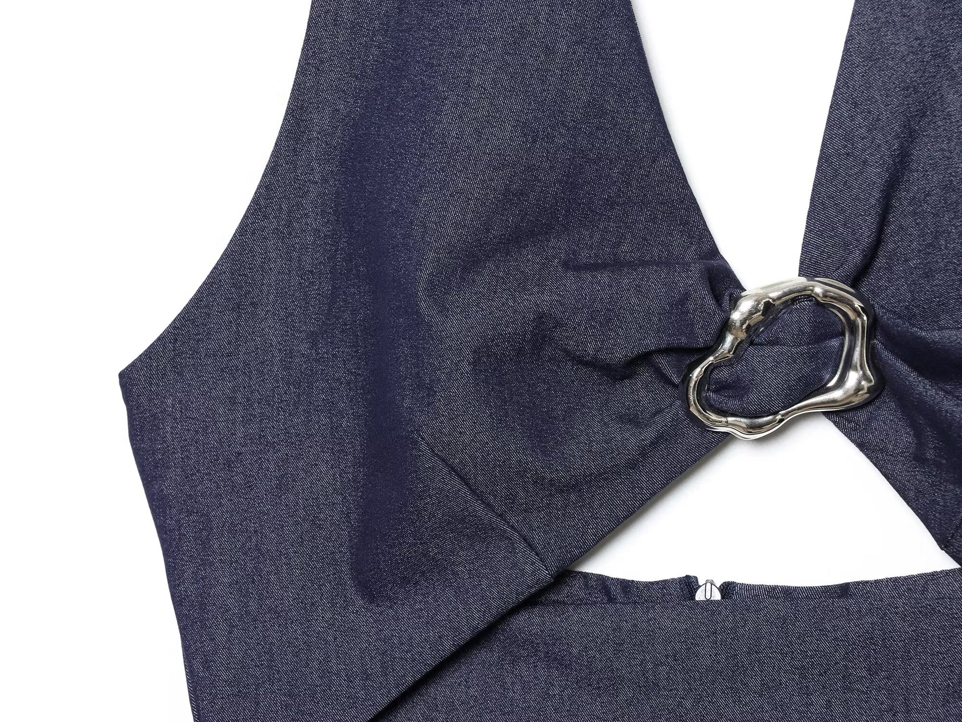 Women's New Fashion Open Design Tight Cowboy Hanging Neck Midi Dress