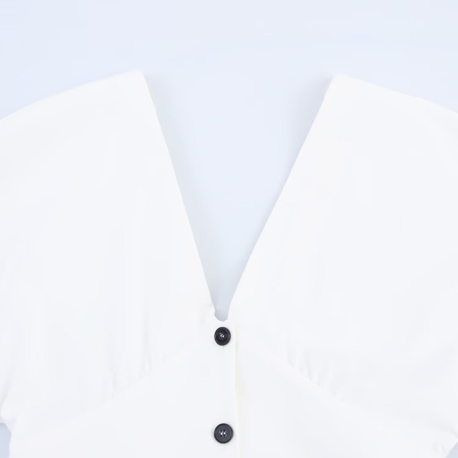 Women's New Fashion Short sleeved Single breasted Poplin V-neck Midi Dress