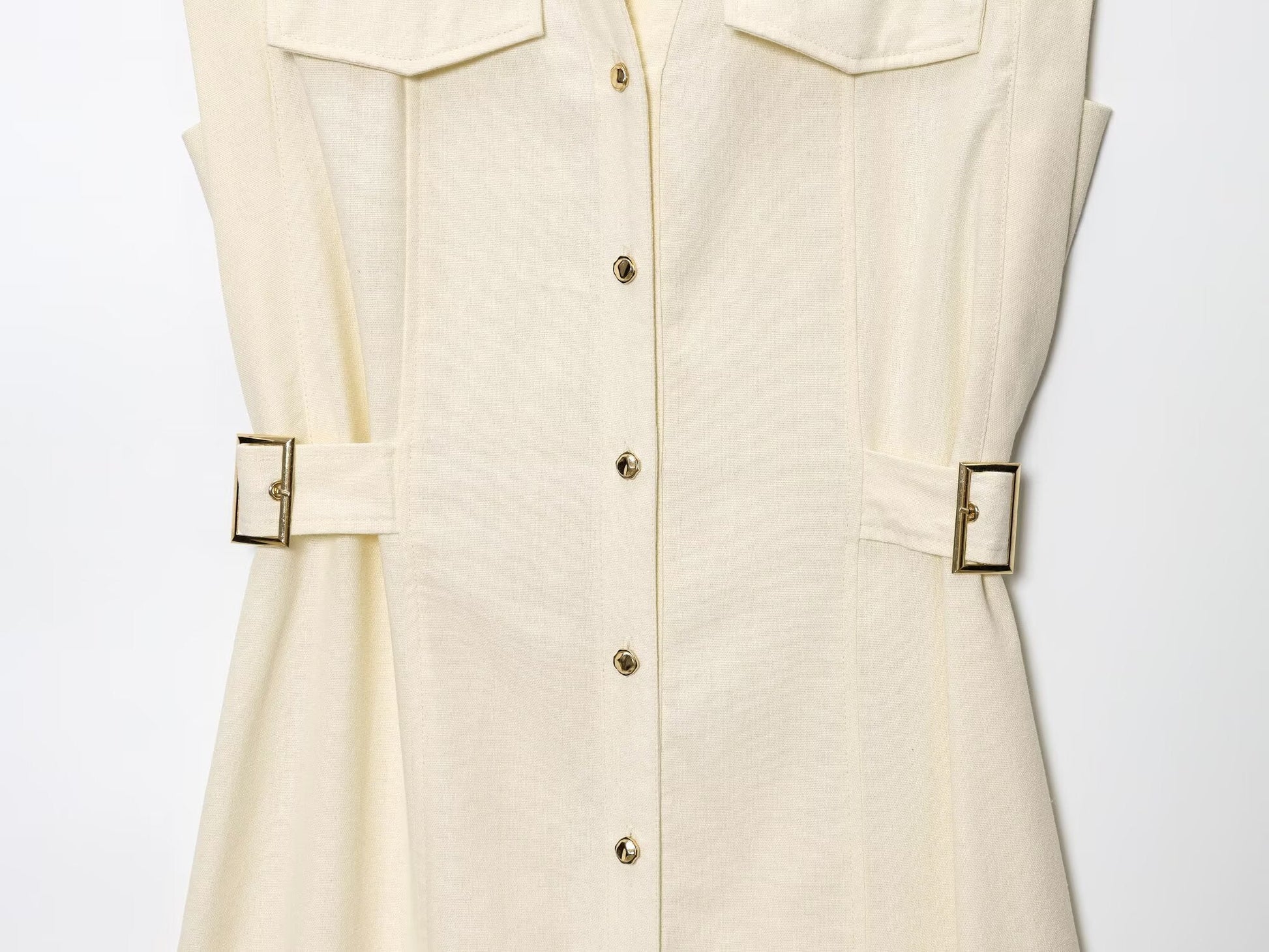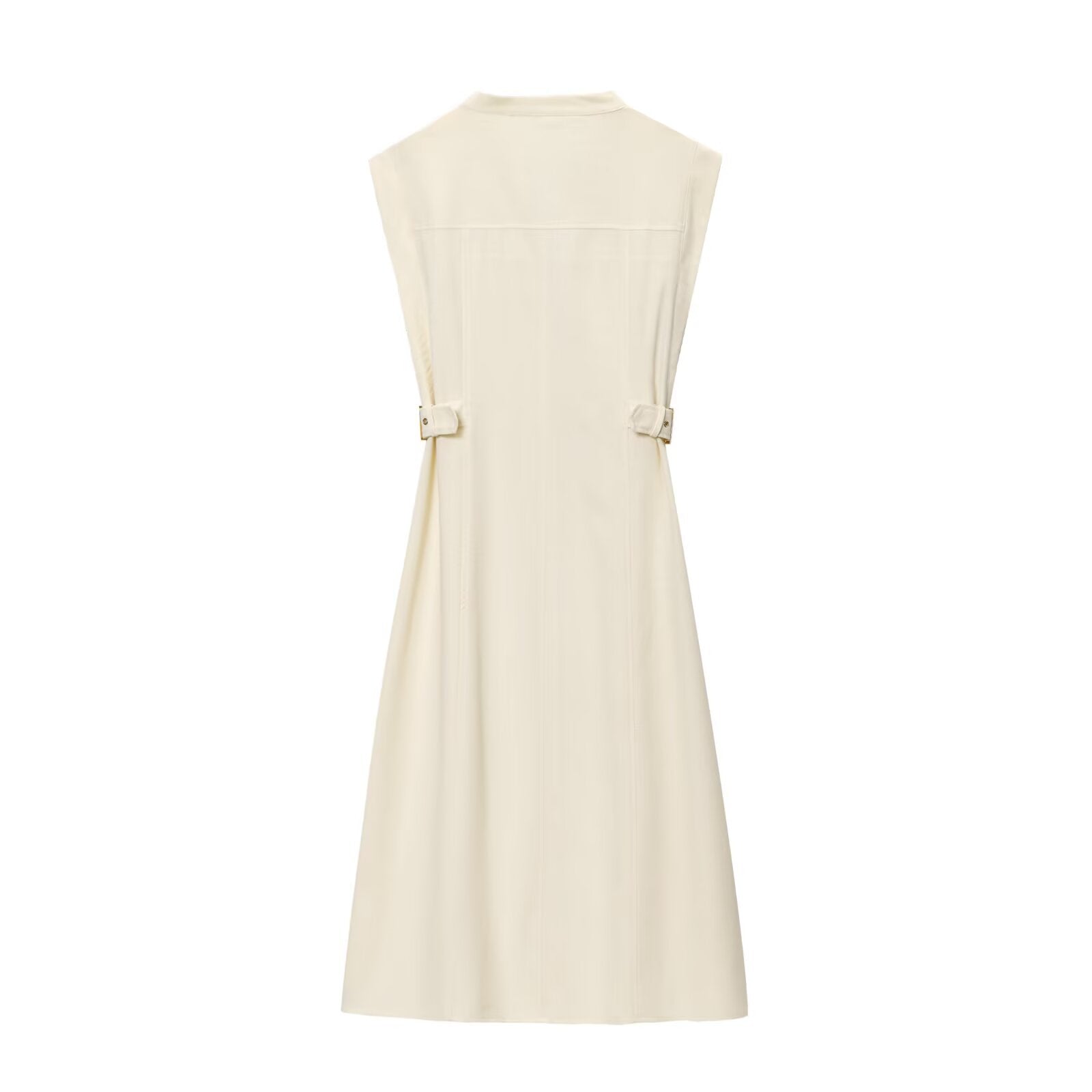 Women's New Fashion Sleeveless Single breasted Linen Blended Midi Dress