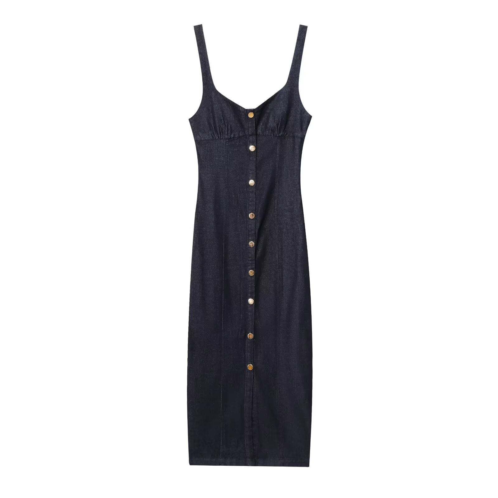 Women's New Fashion Sleeveless Wide Shoulder Strap Cowboy Midi Dress