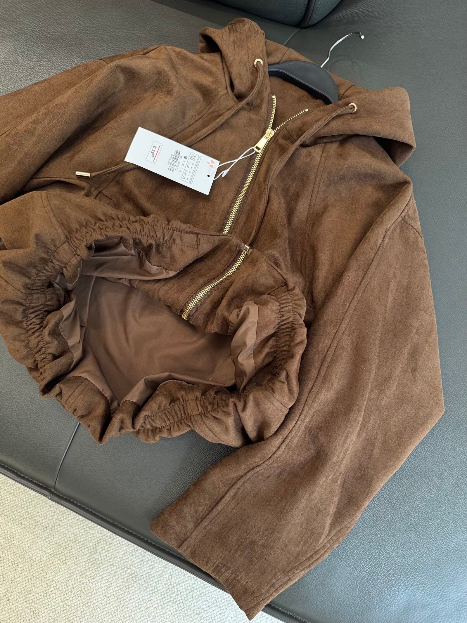 מעיל טיסה עם קפוצ'ון וטקסטורת זמש אופנתית חדשה לנשים