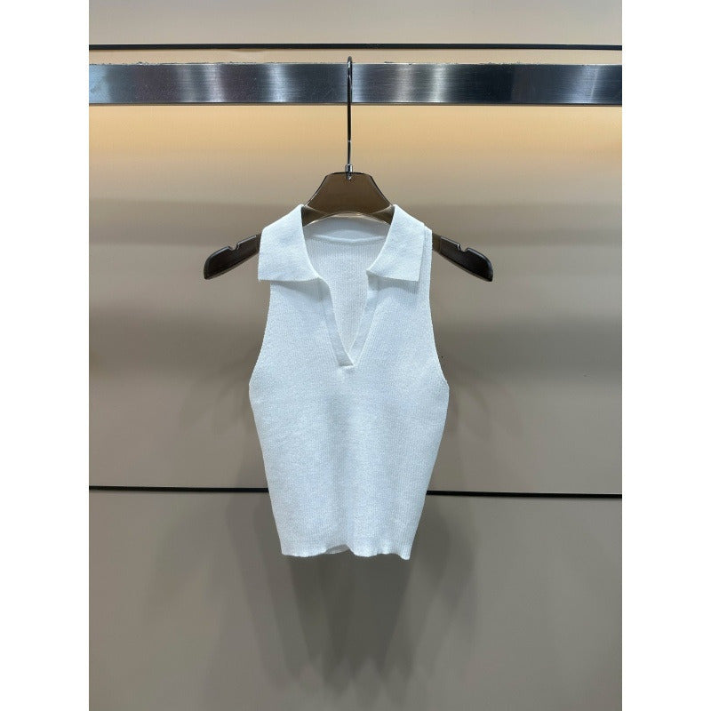וסט סרוג ללא שרוולים עם דש ג'וקר חדש לנשים