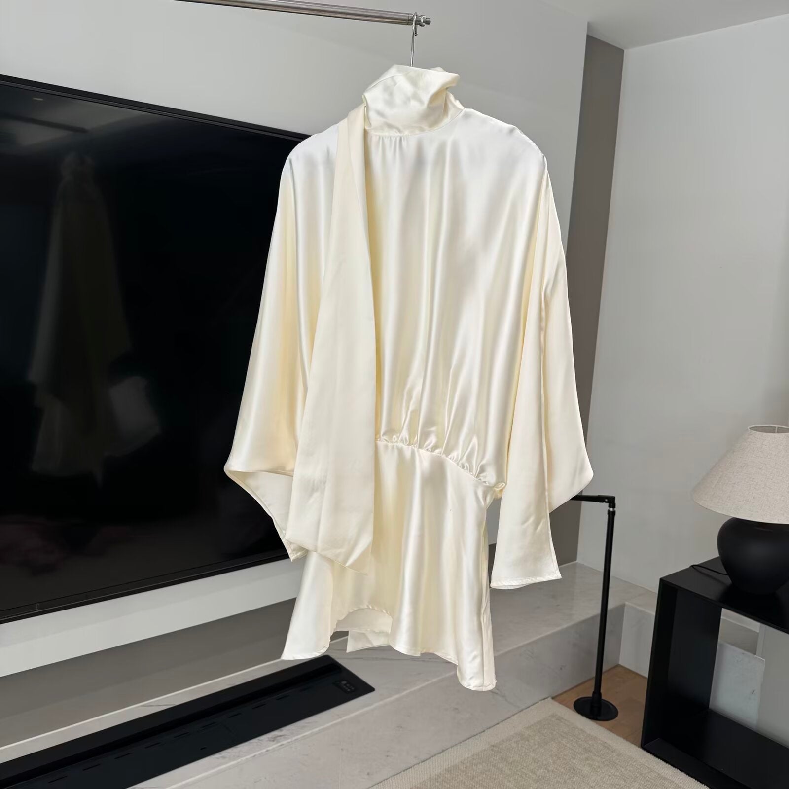 Women's new scarf decoration satin texture mini dress